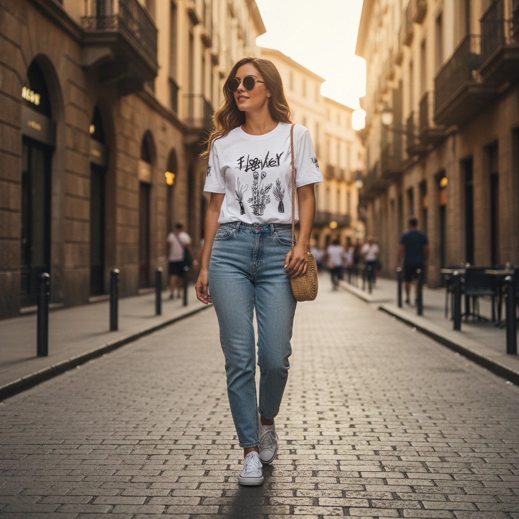 Fokus auf Qualität: Stoff, Schnitt und kleines Motiv (z. B. feine Typo oder dezente Illustration) bestimmen die Wirkung.